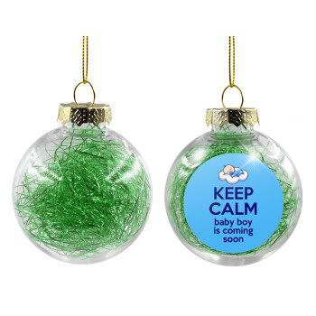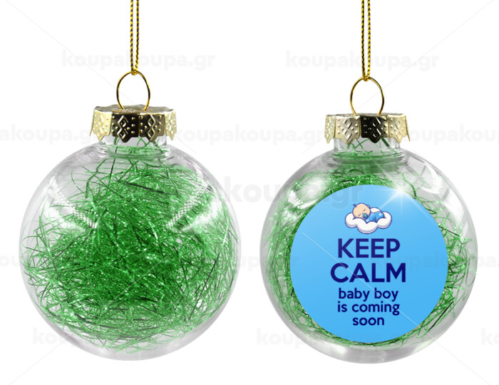KEEP CALM baby boy is coming soon!!!, Transparent Christmas tree ball ornament with green filling 8cm