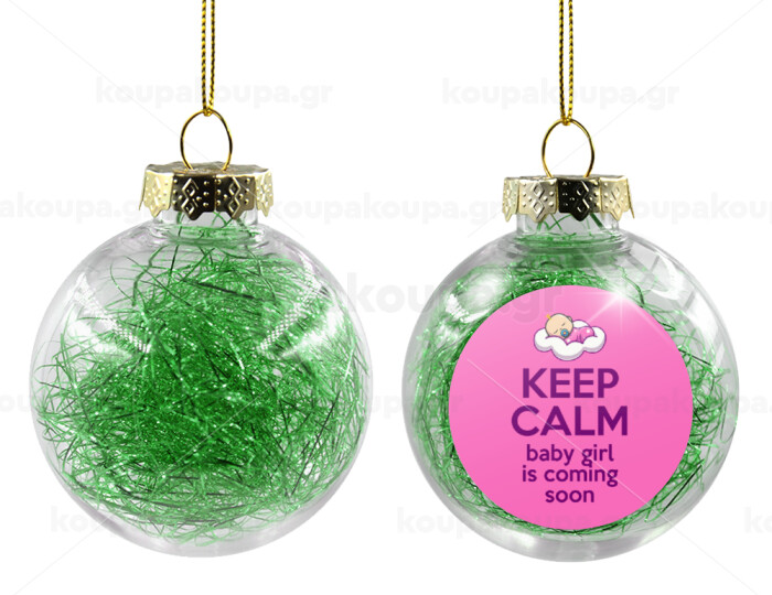 KEEP CALM baby girl is coming soon!!!, Transparent Christmas tree ball ornament with green filling 8cm