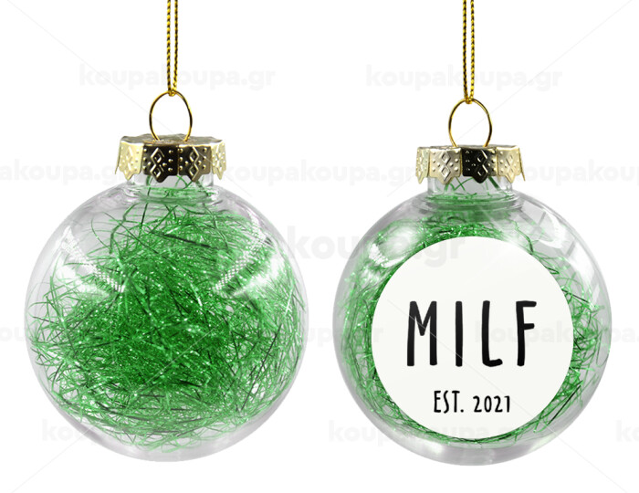 MILF, Transparent Christmas tree ball ornament with green filling 8cm