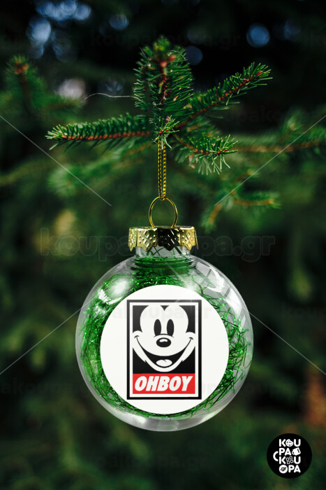 Oh boy μίκυ, Transparent Christmas tree ball ornament with green filling 8cm
