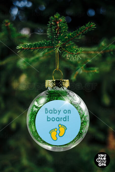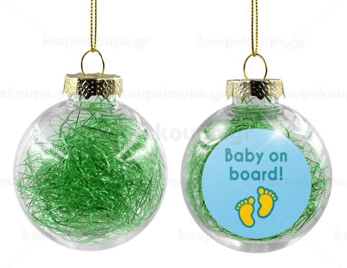 Baby on Board πατουσα Αγόρι, Transparent Christmas tree ball ornament with green filling 8cm