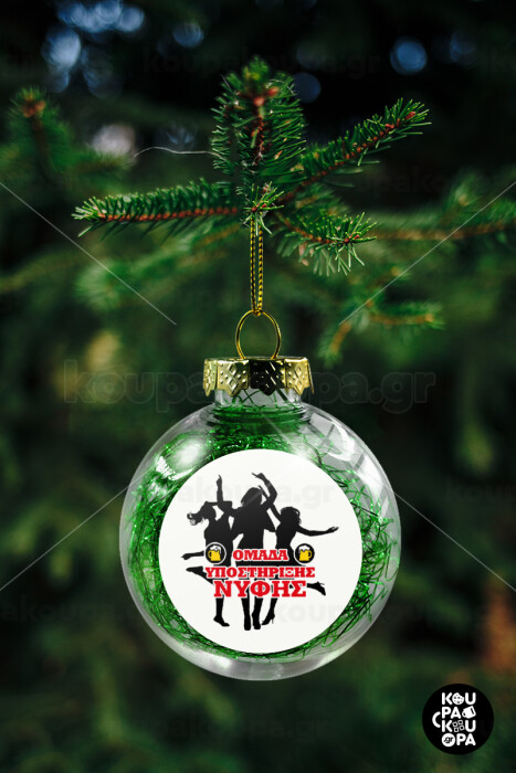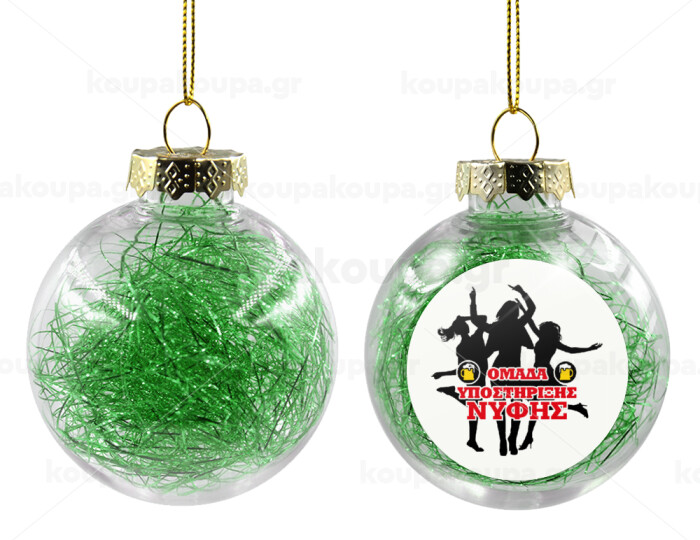 Bachelor Ομάδα υποστήριξης Νύφης, Transparent Christmas tree ball ornament with green filling 8cm