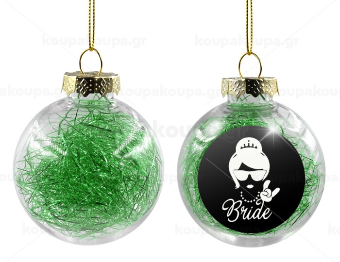 Bride hands, Transparent Christmas tree ball ornament with green filling 8cm