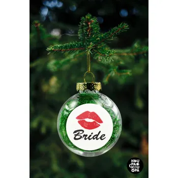 Bride kiss, Transparent Christmas tree ball ornament with green filling 8cm