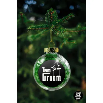 Team Groom, Transparent Christmas tree ball ornament with green filling 8cm