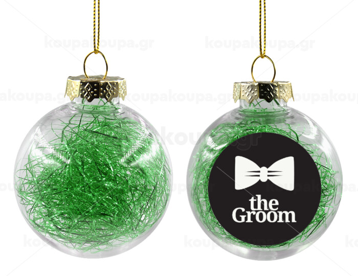 The Groom, Transparent Christmas tree ball ornament with green filling 8cm