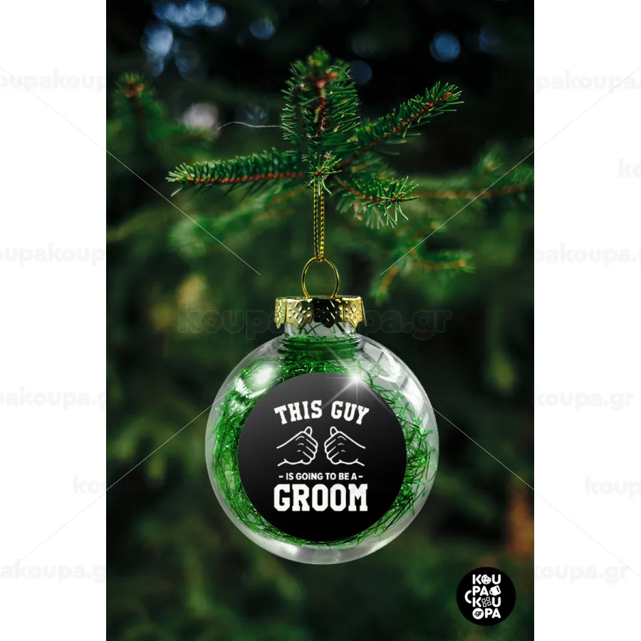 This Guy is going to be a GROOM, Transparent Christmas tree ball ornament with green filling 8cm