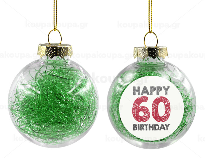 Happy 60 birthday!!!, Transparent Christmas tree ball ornament with green filling 8cm