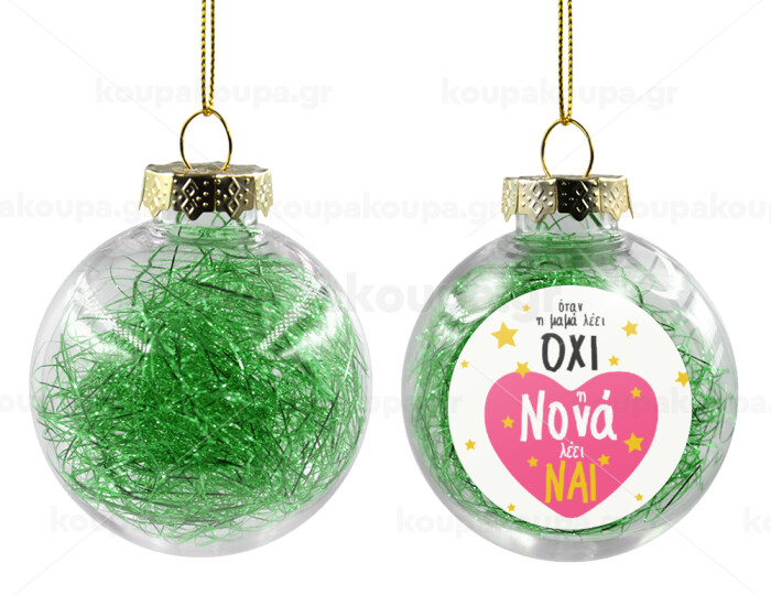 Η νονά λέει ναι!!!, Transparent Christmas tree ball ornament with green filling 8cm