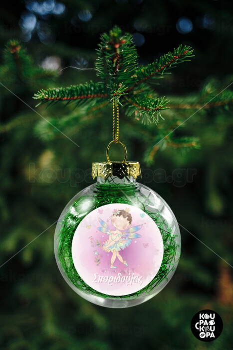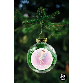 Η νονά μου, Νεράϊδα, Transparent Christmas tree ball ornament with green filling 8cm