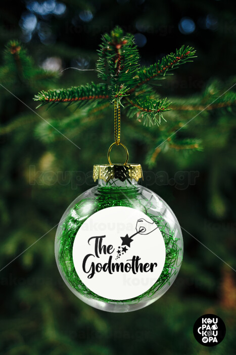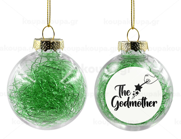 Fairy God Mother, Transparent Christmas tree ball ornament with green filling 8cm