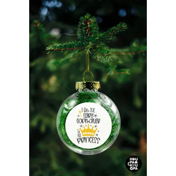 I am the fairy Godmother of the Princess, Transparent Christmas tree ball ornament with green filling 8cm