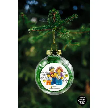 Τύπου Lego family, Transparent Christmas tree ball ornament with green filling 8cm