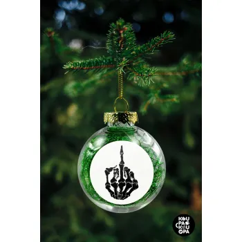Middle finger, Transparent Christmas tree ball ornament with green filling 8cm