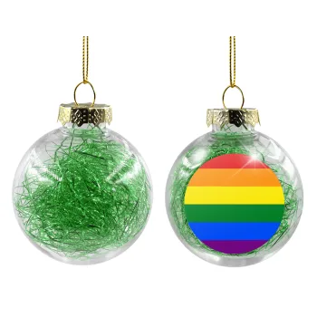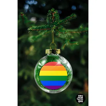 Rainbow flag (LGBT) , Transparent Christmas tree ball ornament with green filling 8cm