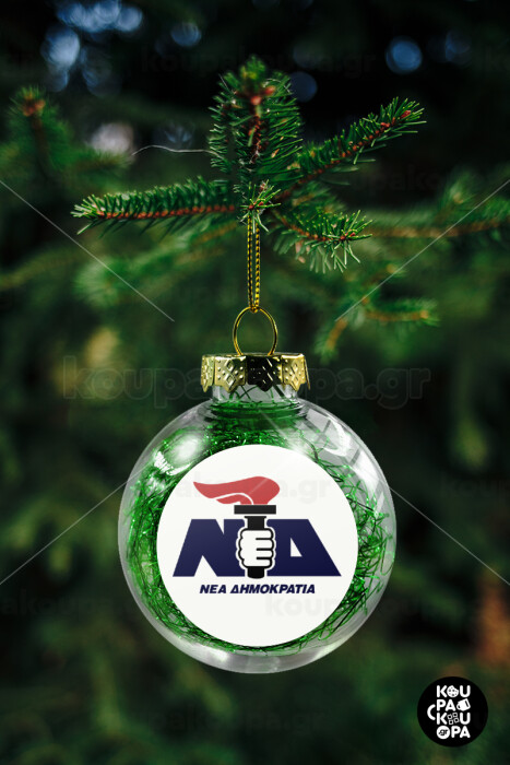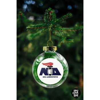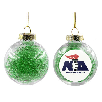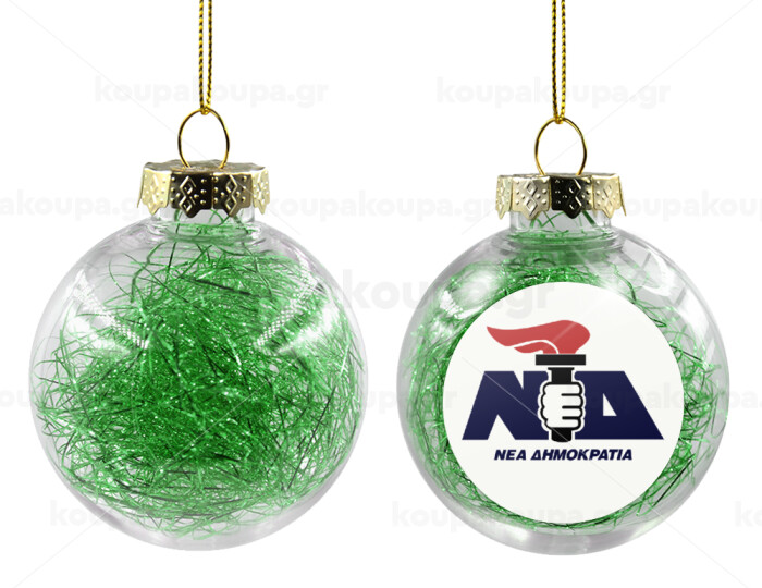 Νέα δημοκρατία κλασική, Transparent Christmas tree ball ornament with green filling 8cm