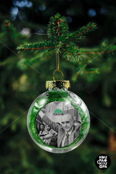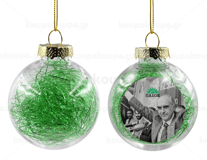 ΠΑΣΟΚ Ανδρέας, Transparent Christmas tree ball ornament with green filling 8cm