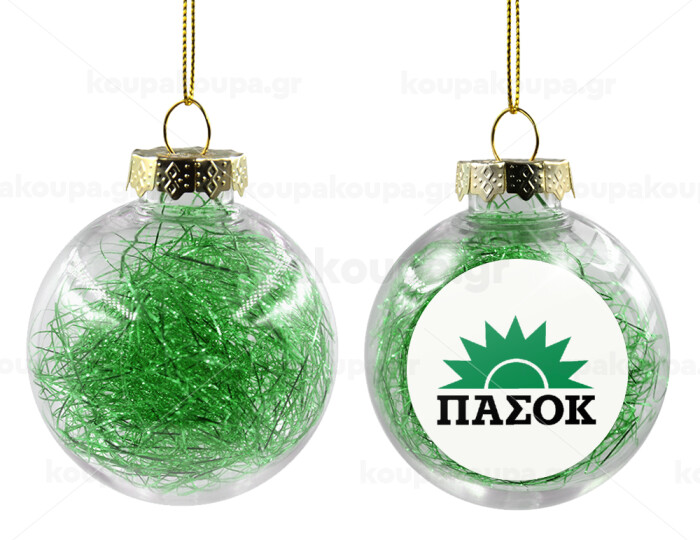 pasok, Transparent Christmas tree ball ornament with green filling 8cm