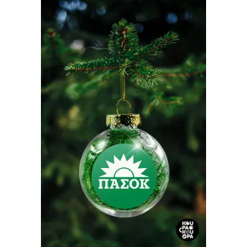 PASOK Green/White, Transparent Christmas tree ball ornament with green filling 8cm