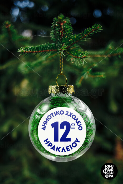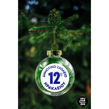 Έμβλημα Σχολικό λευκή, Transparent Christmas tree ball ornament with green filling 8cm