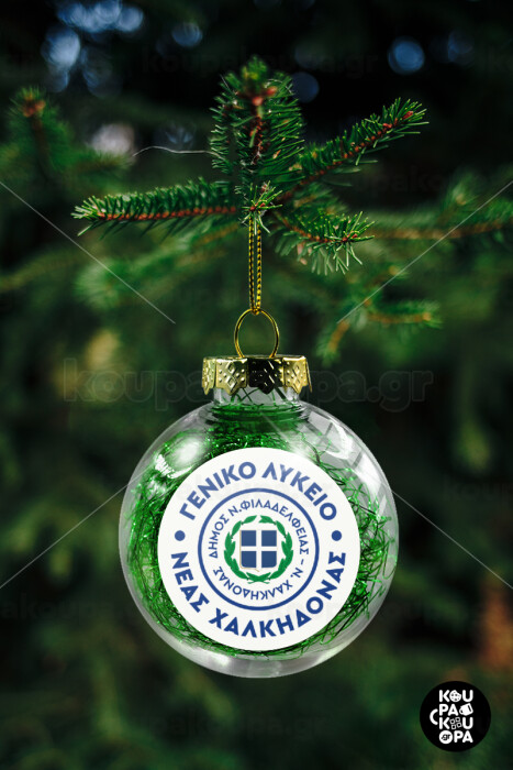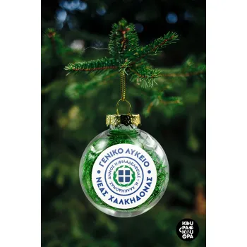 Έμβλημα Σχολικό με δάφνες, Transparent Christmas tree ball ornament with green filling 8cm