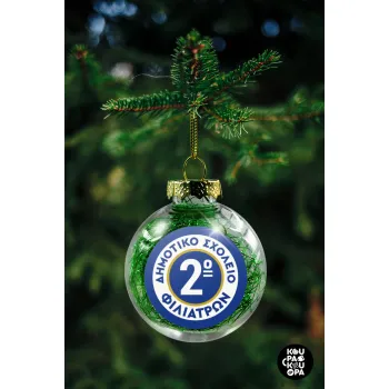 Έμβλημα Σχολικό μπλε κλασική, Transparent Christmas tree ball ornament with green filling 8cm