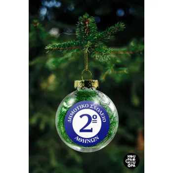 Έμβλημα Σχολικό μπλε, Transparent Christmas tree ball ornament with green filling 8cm