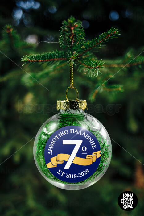 Σχολική μπλε με κορδέλα, Transparent Christmas tree ball ornament with green filling 8cm