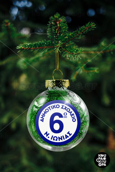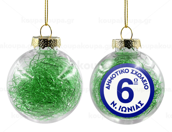 Σχολικό σήμα κλασικό μπλε, Transparent Christmas tree ball ornament with green filling 8cm