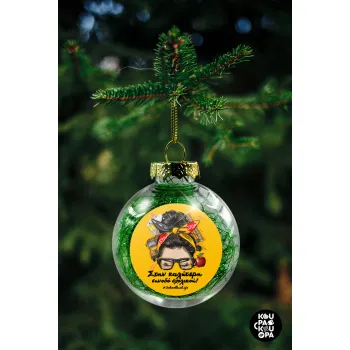 Στην καλύτερη συνοδό σχολικού!, Transparent Christmas tree ball ornament with green filling 8cm