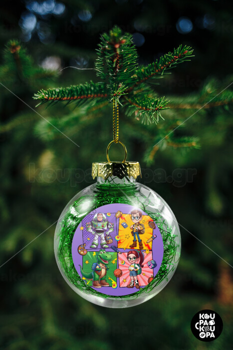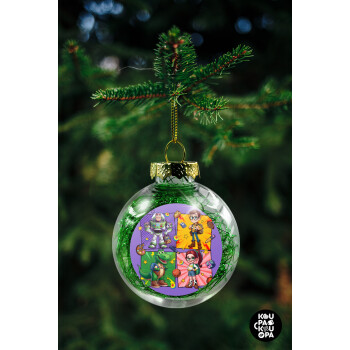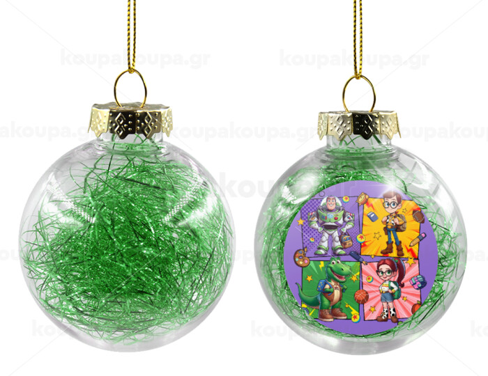 Back to the School Buzz & Friends, Transparent Christmas tree ball ornament with green filling 8cm