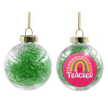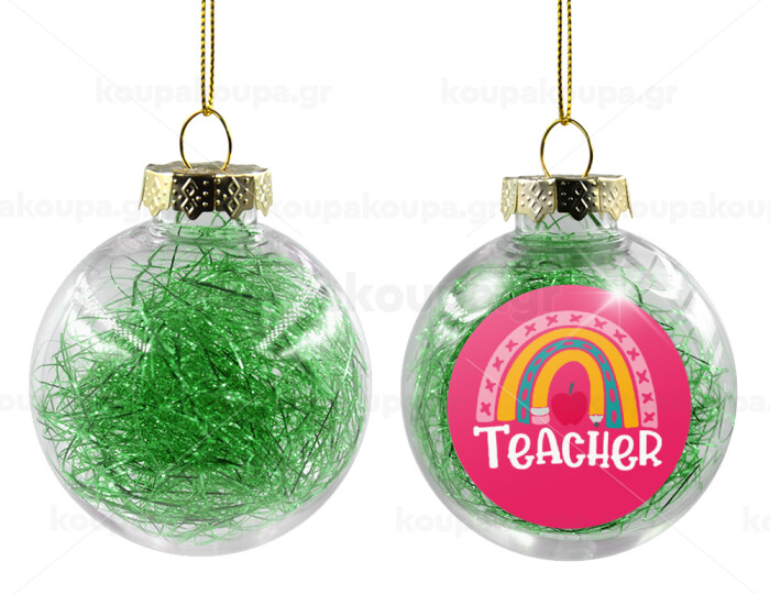 Rainbow teacher, Transparent Christmas tree ball ornament with green filling 8cm
