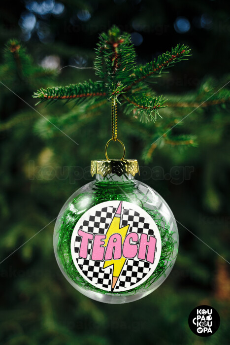 Teach, Transparent Christmas tree ball ornament with green filling 8cm