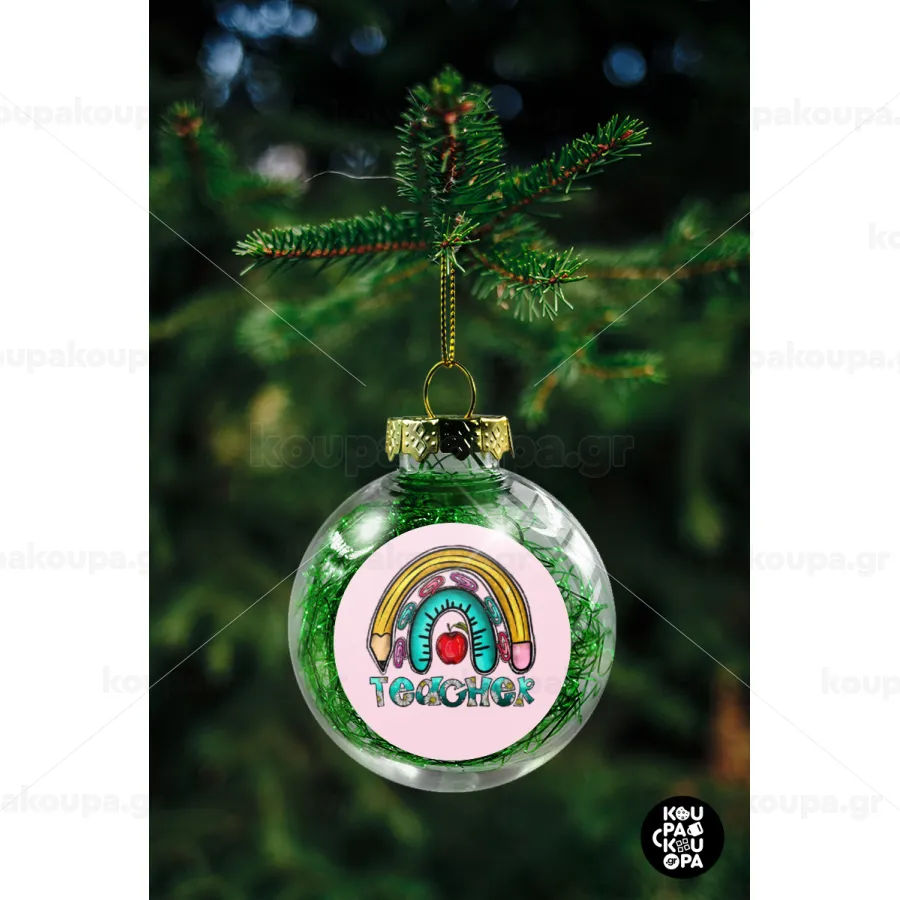 Teacher, Transparent Christmas tree ball ornament with green filling 8cm