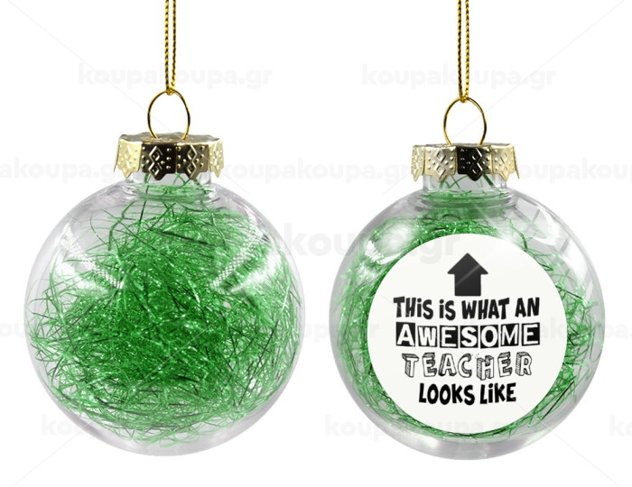 This is what an awesome teacher looks like!!! , Transparent Christmas tree ball ornament with green filling 8cm