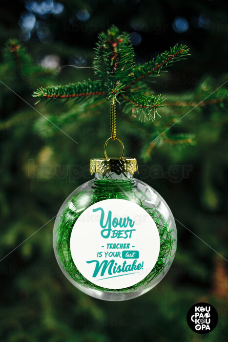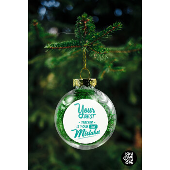Your best teacher is your last mistake, Transparent Christmas tree ball ornament with green filling 8cm