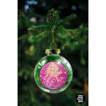 Barbie mermaid , Transparent Christmas tree ball ornament with green filling 8cm