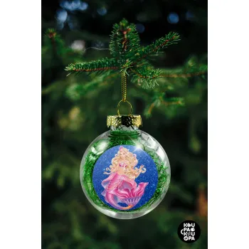 Barbie mermaid blue, Transparent Christmas tree ball ornament with green filling 8cm
