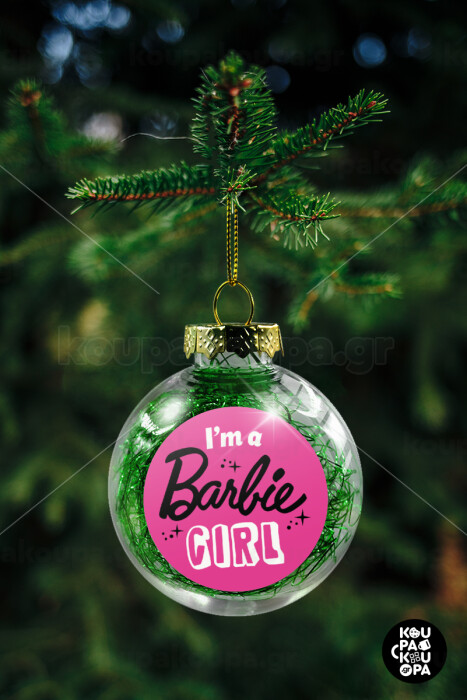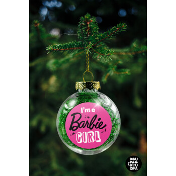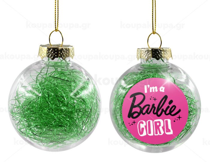 I'm Barbie girl, Transparent Christmas tree ball ornament with green filling 8cm