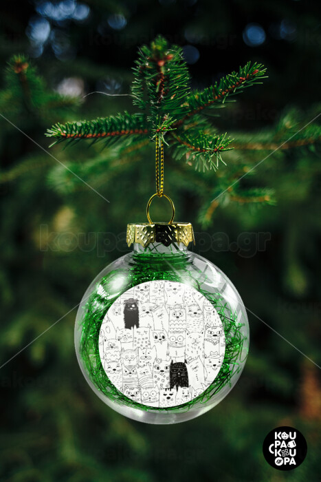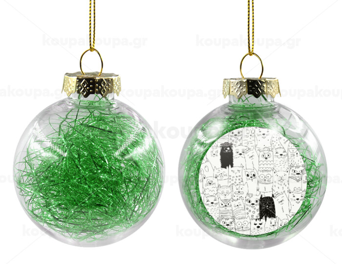 Γάτες γραμμικό σχέδιο, Transparent Christmas tree ball ornament with green filling 8cm