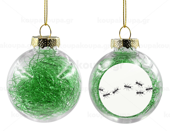 Ants, Transparent Christmas tree ball ornament with green filling 8cm