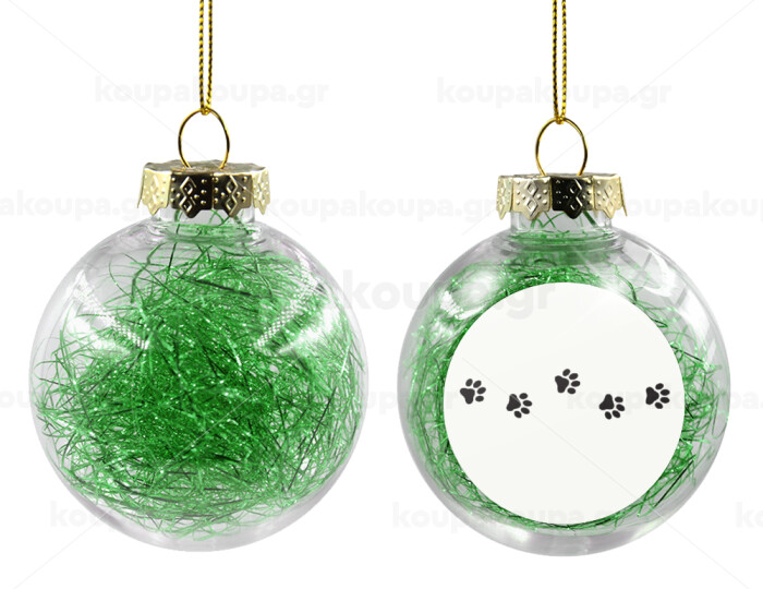 paw, Transparent Christmas tree ball ornament with green filling 8cm
