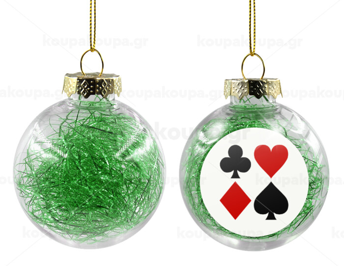 Τραπουλόχαρτα, Transparent Christmas tree ball ornament with green filling 8cm