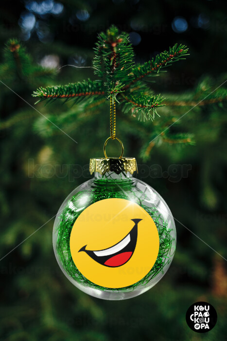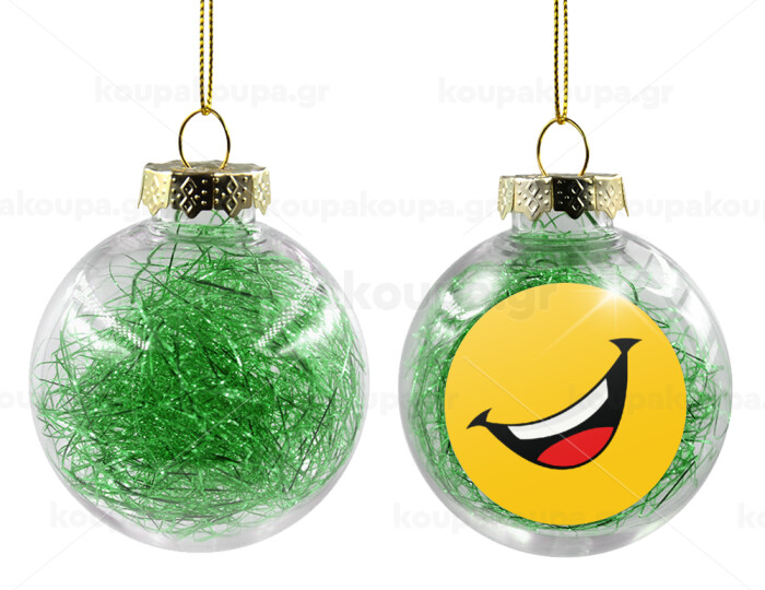 Φατσούλα γελάω!!!, Transparent Christmas tree ball ornament with green filling 8cm