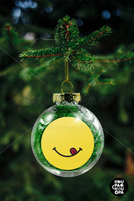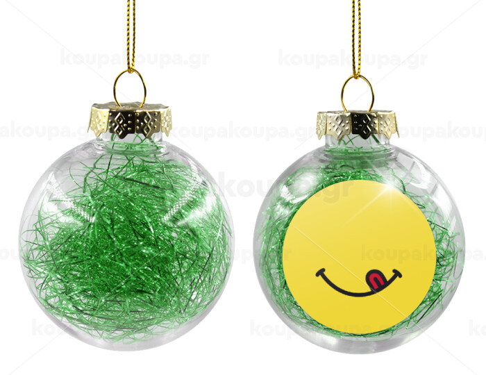Χαμόγελο , Transparent Christmas tree ball ornament with green filling 8cm
