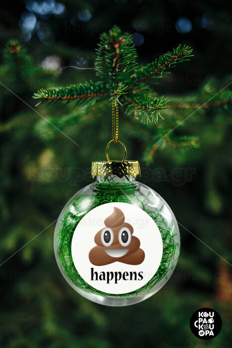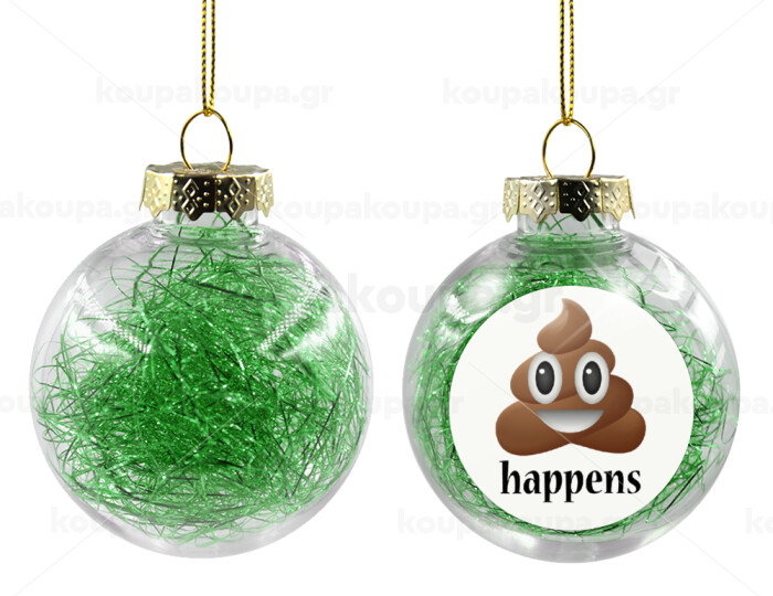 Shit Happens, Transparent Christmas tree ball ornament with green filling 8cm