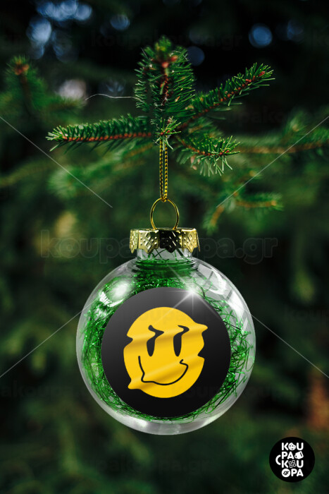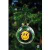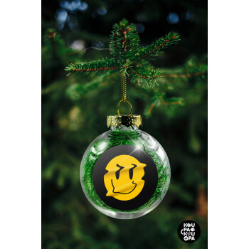 Smile avatar distrorted, Transparent Christmas tree ball ornament with green filling 8cm