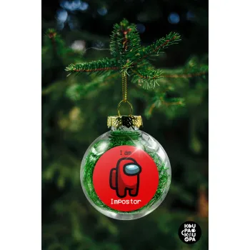 Among US i am impostor, Transparent Christmas tree ball ornament with green filling 8cm