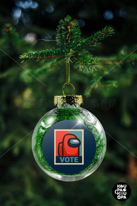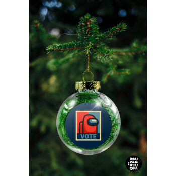 Among US VOTE, Transparent Christmas tree ball ornament with green filling 8cm