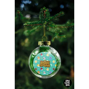 Animal Crossing, Transparent Christmas tree ball ornament with green filling 8cm
